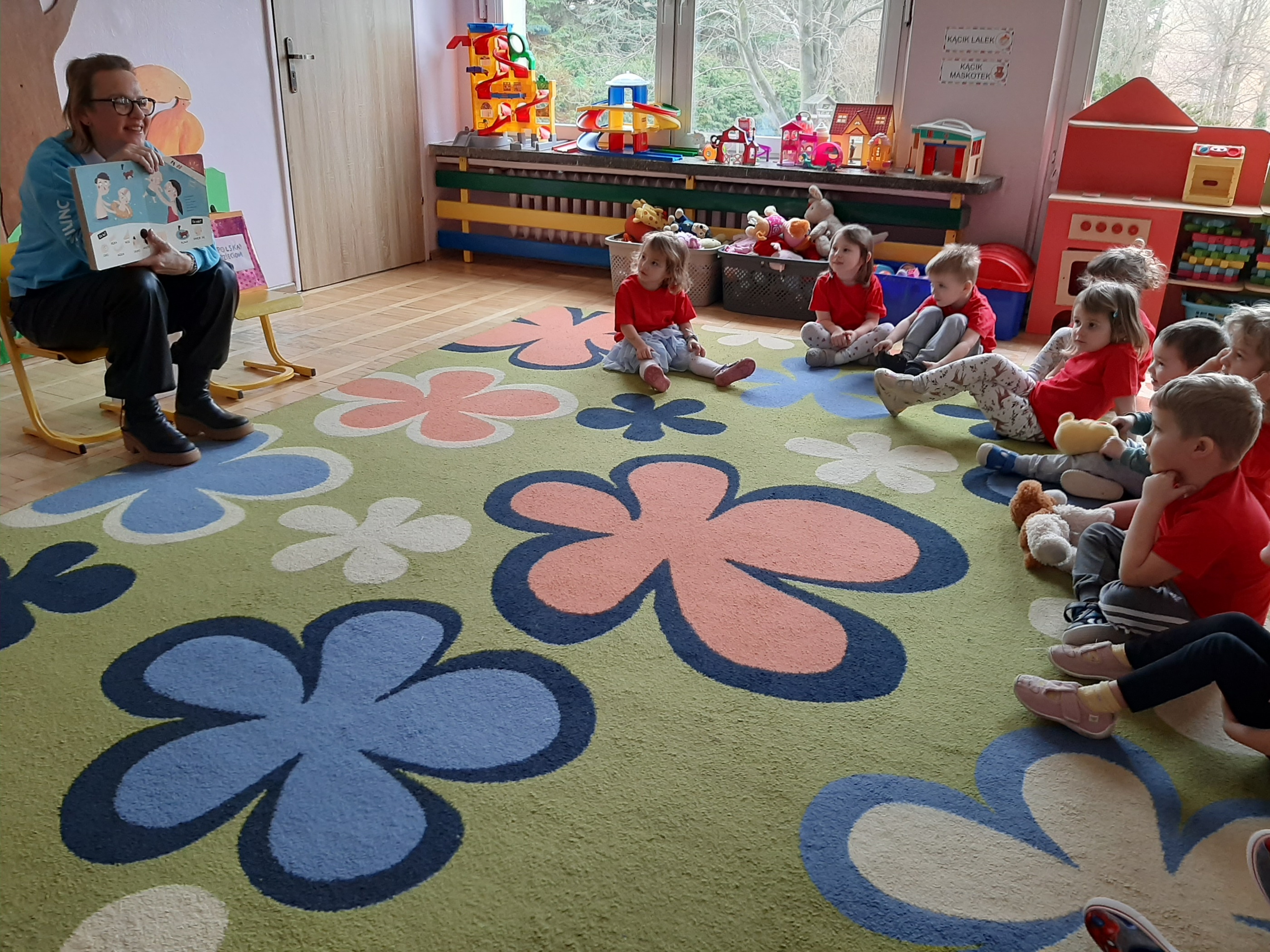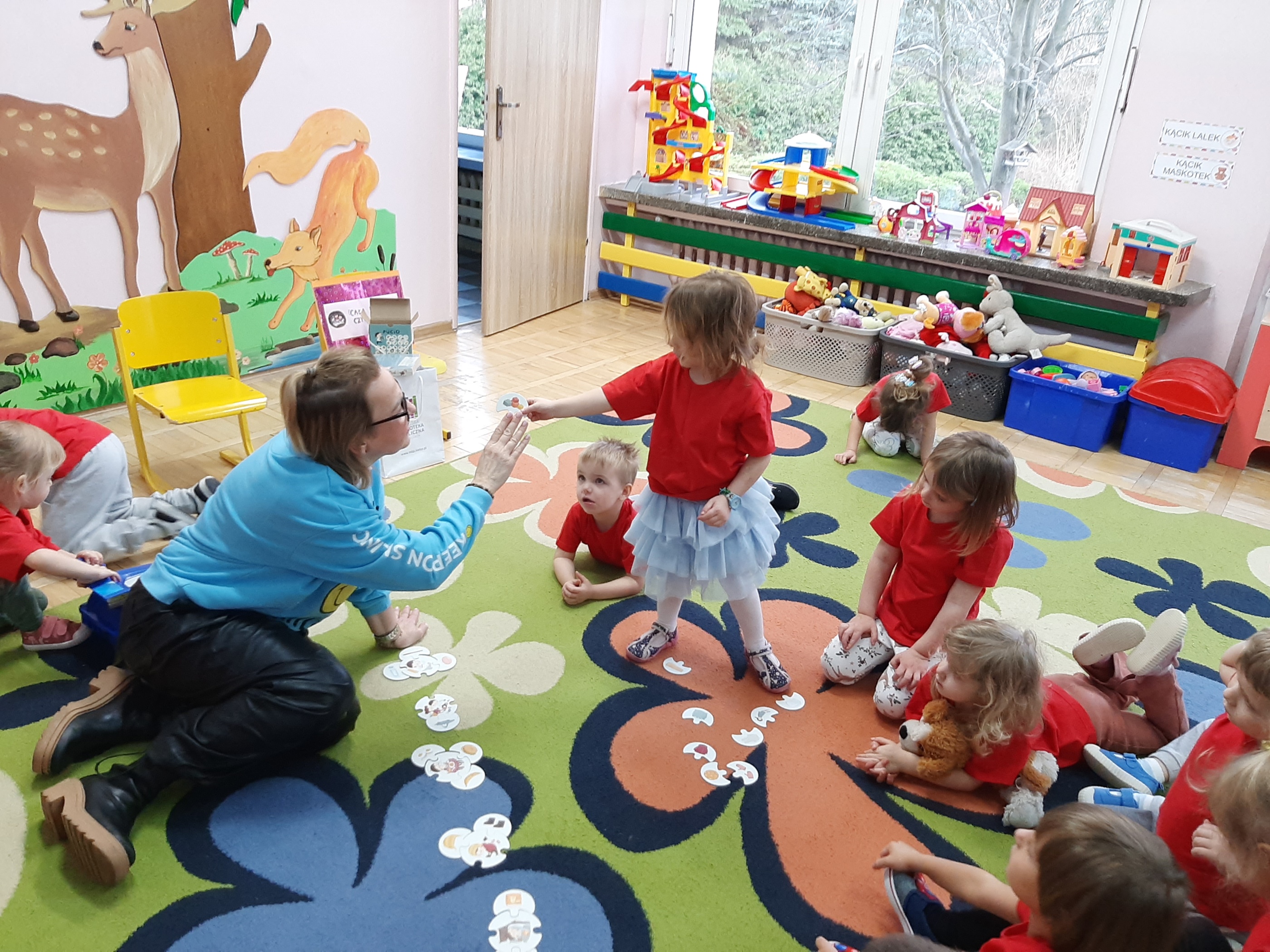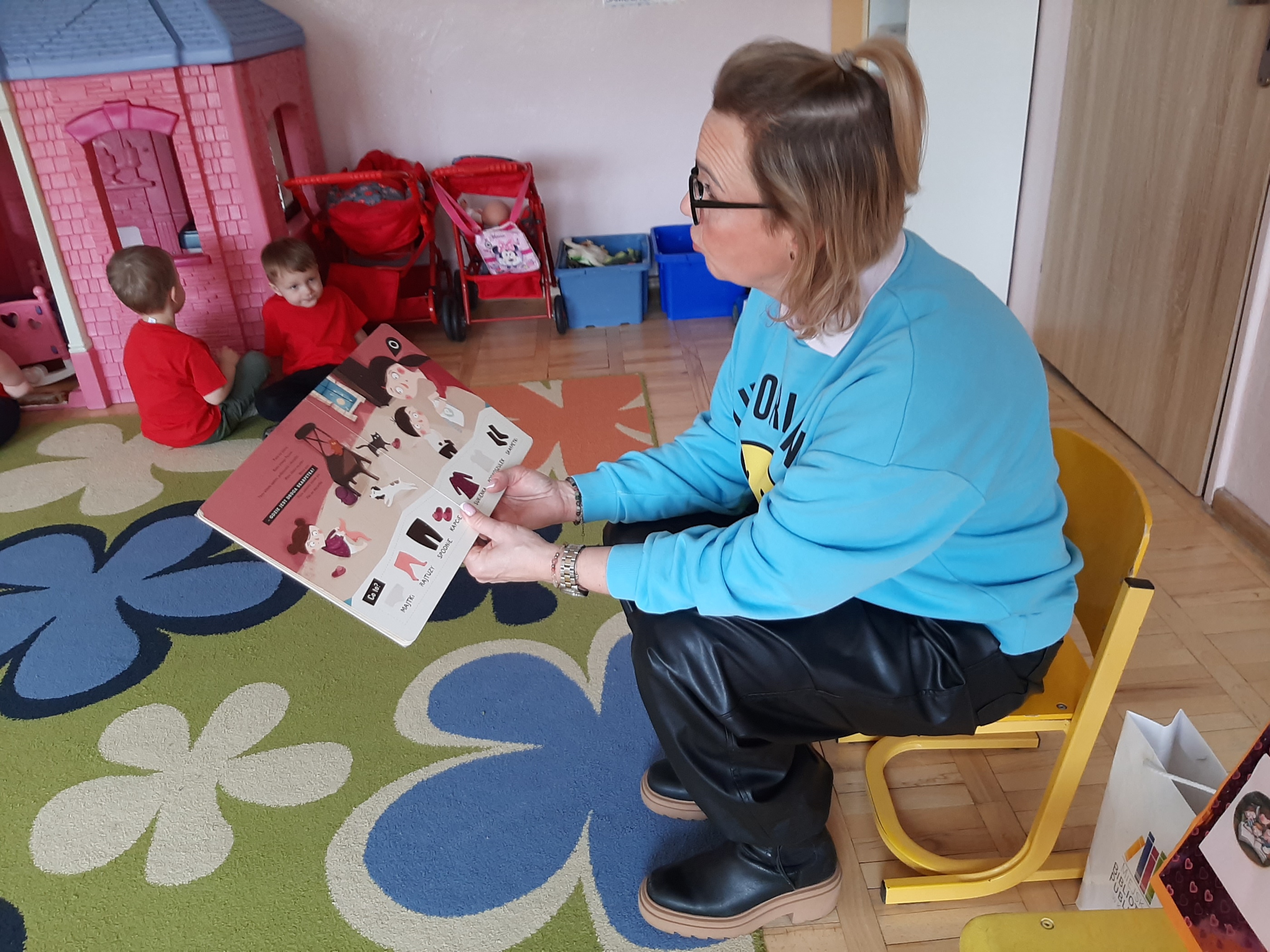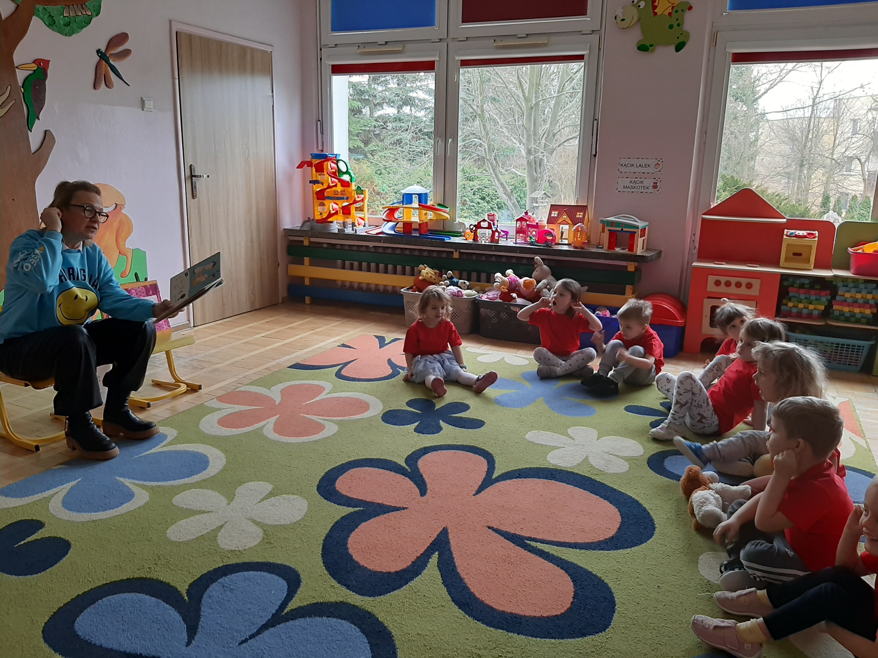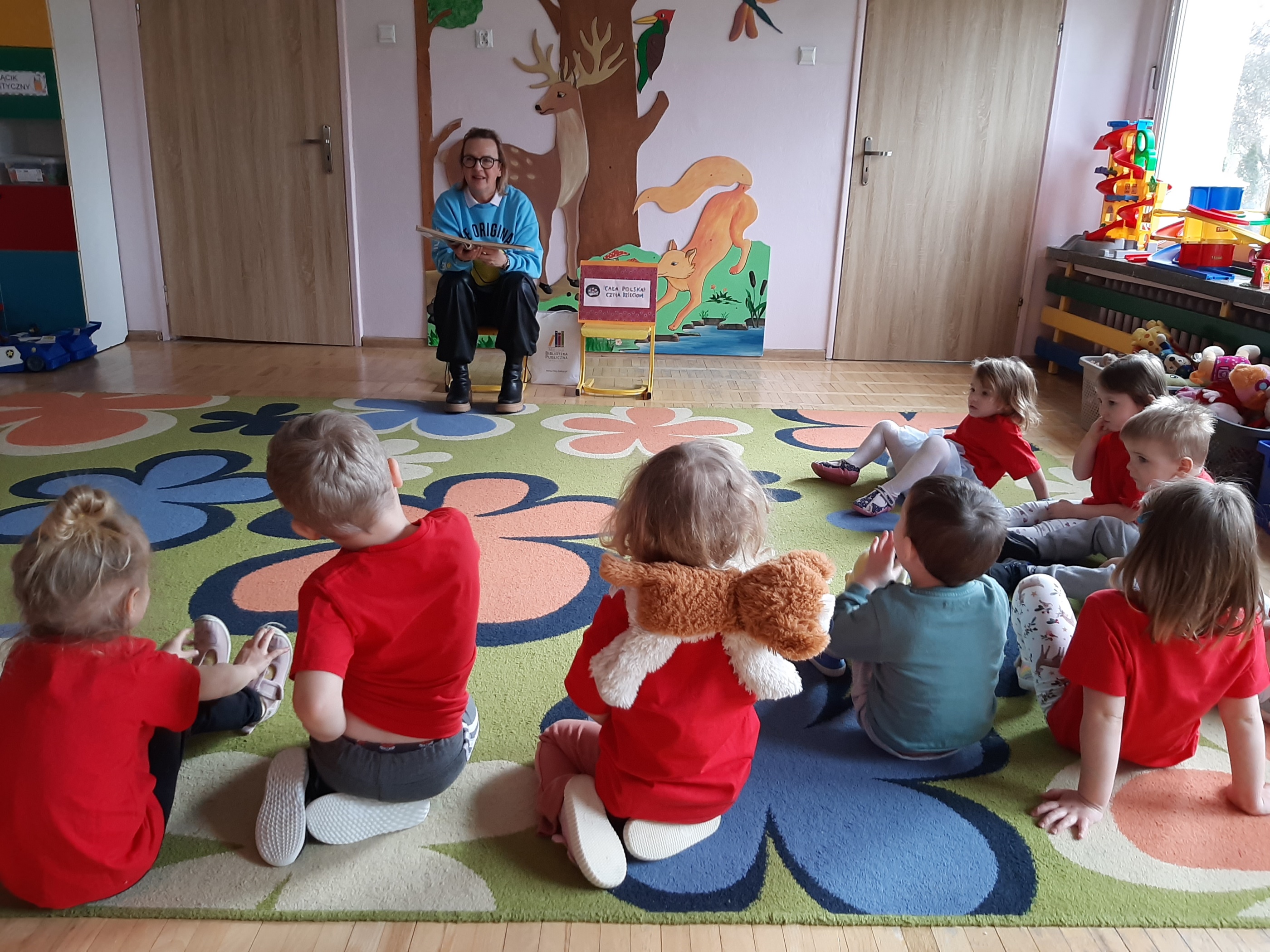 Jako że Projekt „Mała książka - wielki człowiek" jest już stałym punktem naszych zajęć, sprawdziliśmy kto jeszcze nie zapisał się do naszej placówki, by następnie rozdać informacje dla rodziców. Nauka przez działanie w połączeniu ze wspaniałą atmosferą wywołały uśmiechy na twarzach przedszkolaków, co dla nas jest największą nagrodą i zachętą do kolejnych odwiedzin.