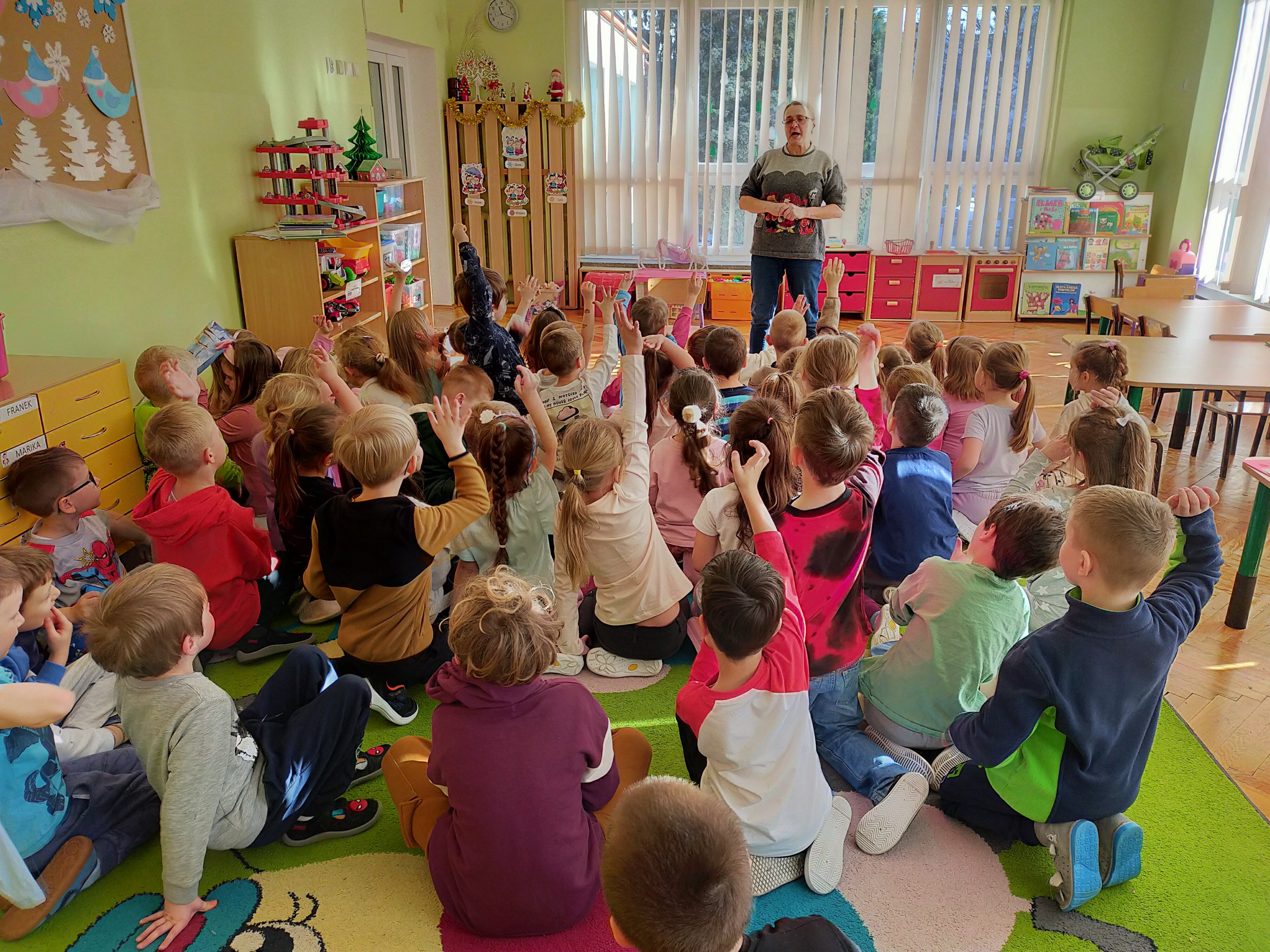 Pytania trudne, ale wspólnymi siłami poznaliśmy odpowiedzi. Ciekawość po części zaspokojona, ale są jeszcze pytania, na które odpowiedzi skryły się w bibliotece. Przedszkolaki już zapowiedziały swoją wizytę w naszych skromnych progach. Już nie możemy się doczekać. Dziękujemy za wspólnie spędzony czas. Do zobaczenia.