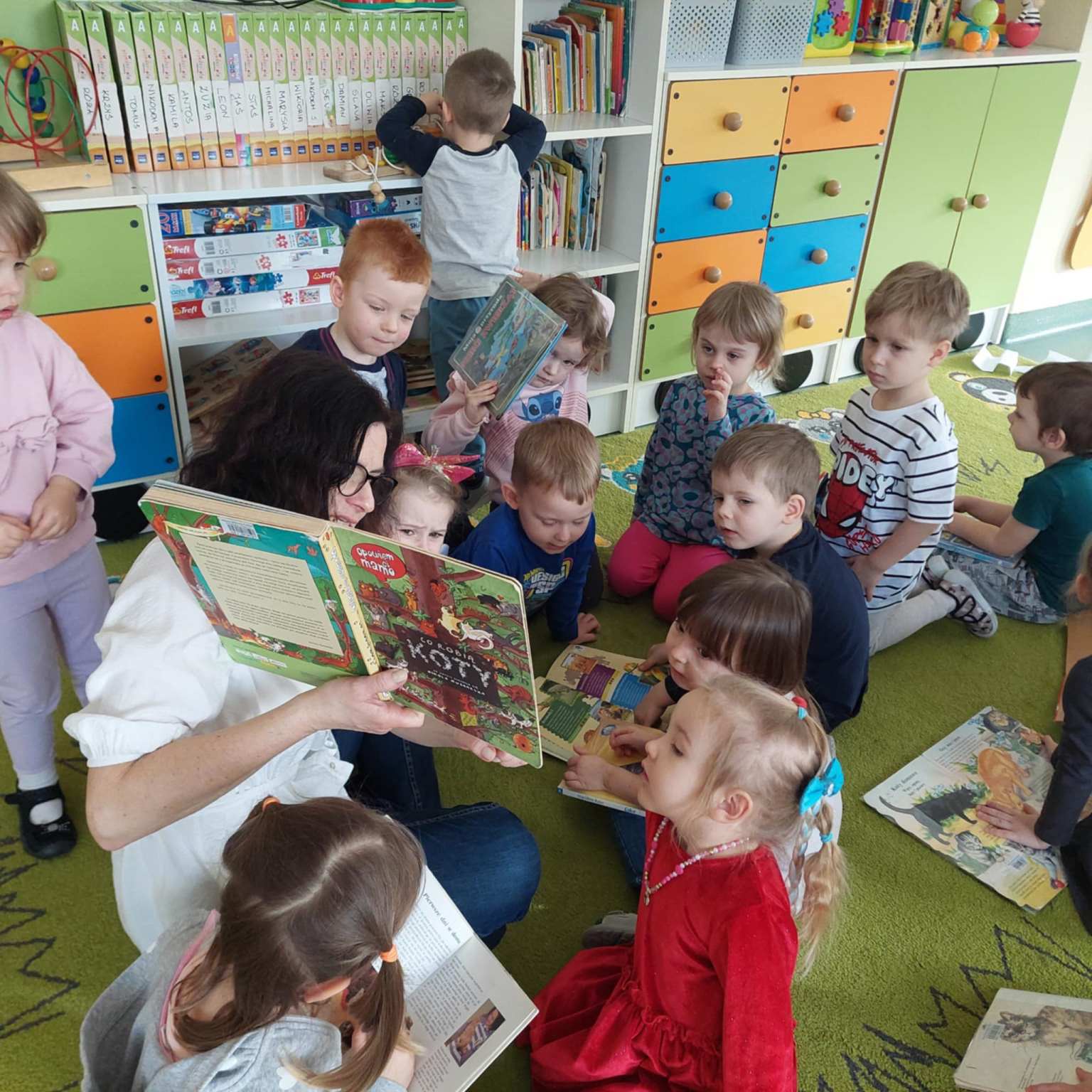 17 lutego razem z dziećmi z grupy "Stokrotki" z PS nr 35 obchodziliśmy Światowy Dzień Kota. Po przeczytaniu dzieciom opowiadania "Co robią koty" i kilku ciekawostek o kotach i ich zwyczajach, wspólnie próbowaliśmy kociej gimnastyki, mowy i innych kocich zabaw. Dużym zainteresowaniem cieszyły się książki, przyniesione przez nas do przedszkola, których bohaterami były koty.
