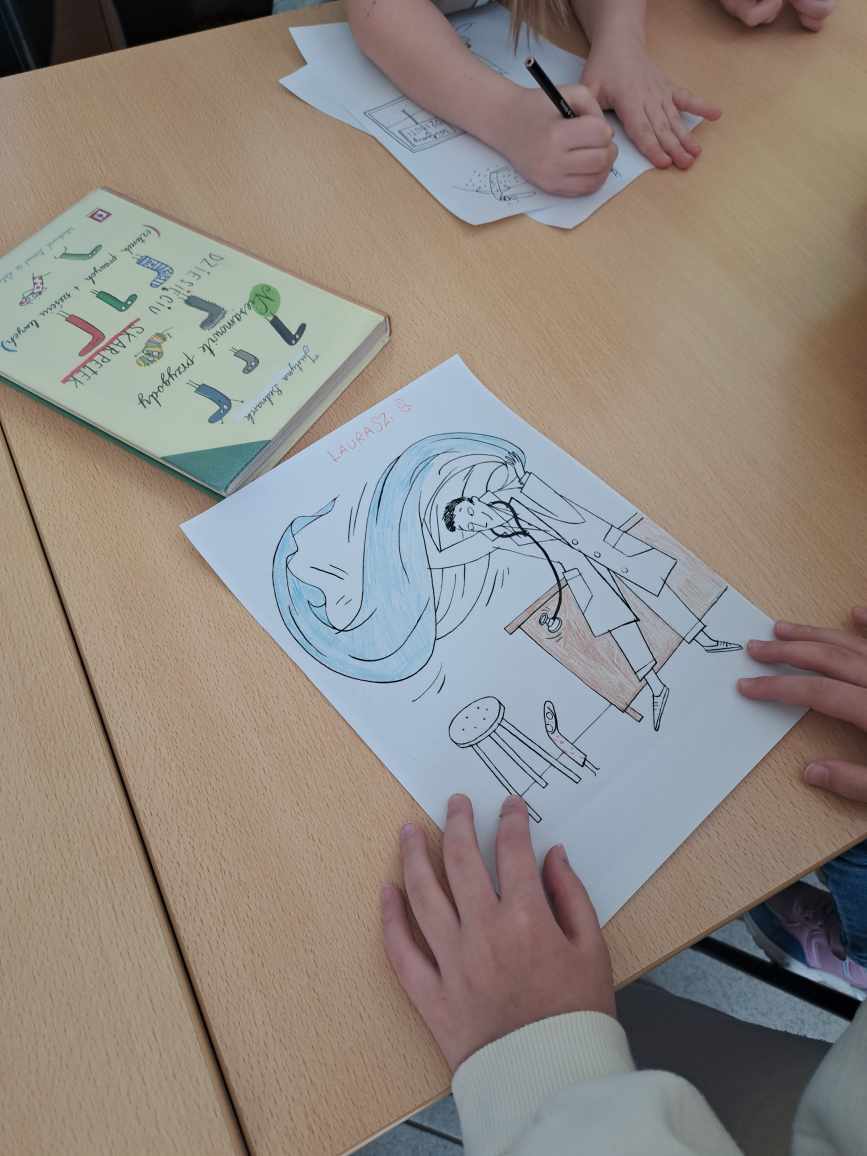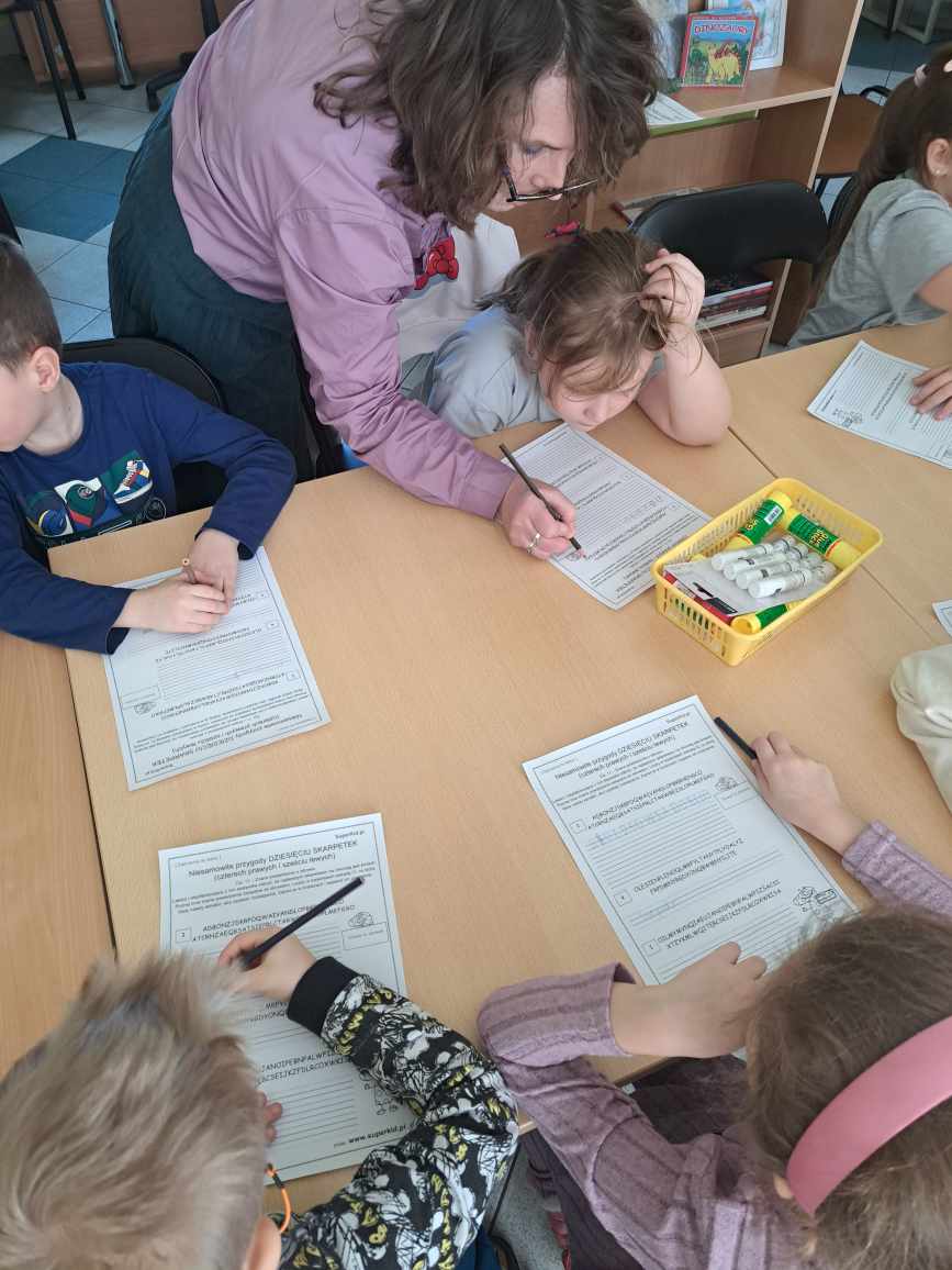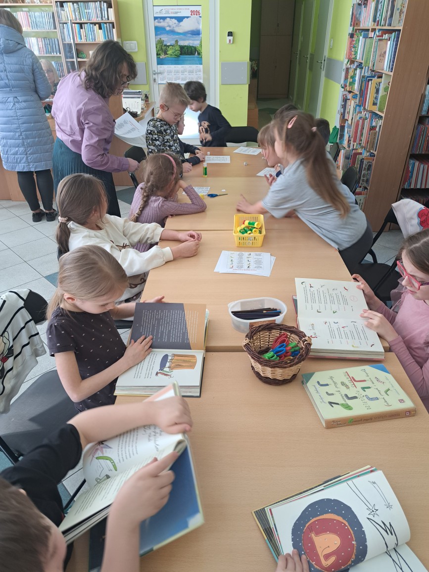 27 lutego 2026 r. do naszej filii przyszli uczniowie klasy I c SP nr 5, aby utrwalić sobie przeczytaną lekturę "Niesamowite przygody dziesięciu skarpetek". Dla wielu miłym zaskoczeniem była wiadomość, że seria ta składa się aż z 8. części. Podczas zajęć wszyscy odpowiadali na pytania dotyczące lektury, m.in. do odpowiedniej przygody dopasowywali skarpetkę. Rozwiązując wykreślankę literową dzieci poznały trzy znane powiedzenia związane ze zdrowiem – „Do zdrowia dobrego trzeba serca wesołego”, „Sport to zdrowie”, „Im mniej nienawiści tym więcej zdrowia”.