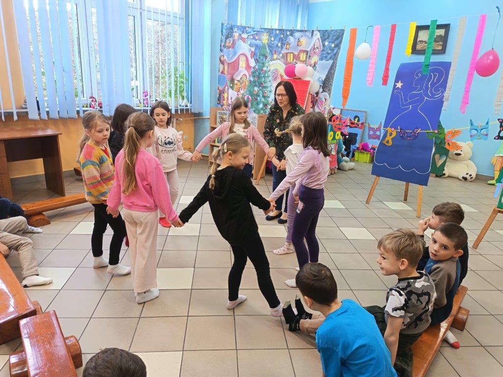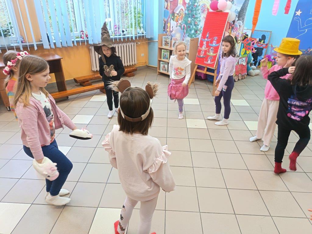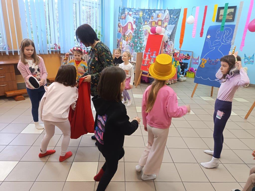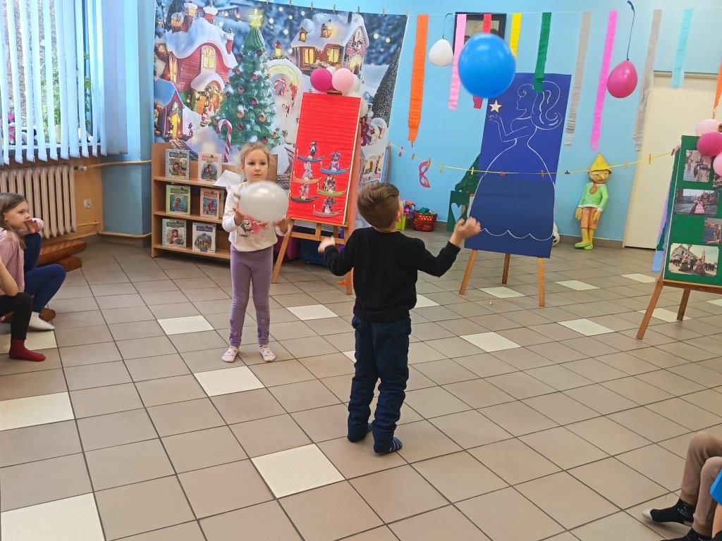 Karnawał to czas zabawy, a dzieci mogą bawić się wszędzie - także w bibliotece. Udowodniła to grupa "Misiaczki" z PS 19, która 6 lutego odwiedziła Filię 11. Na wstępie zajęć przedszkolaki opowiadały, jak wygląda karnawał w Polsce, a od nas dowiedziały się, jakie zwyczaje karnawałowe kultywuje się w Wenecji. Następnie nasi goście wysłuchali książki z serii "Martynka" - było to opowiadanie pt. "Mój królewicz". Wraz z główną bohaterką przenieśliśmy się do Wenecji, gdzie właśnie obchodzono hucznie karnawał i gdzie dziewczynka poznała tajemniczego królewicza uciekającego przed groźną bandą. Po wysłuchaniu opowiadania dzieci odpowiadały na zagadki, a następnie... przystąpiliśmy oczywiście do zabaw tanecznych. Dzieci losowały śmieszne nakrycia głowy i maski, grały balonami, a przede wszystkim tańczyły, bo przecież TRWA KARNAWAŁ.