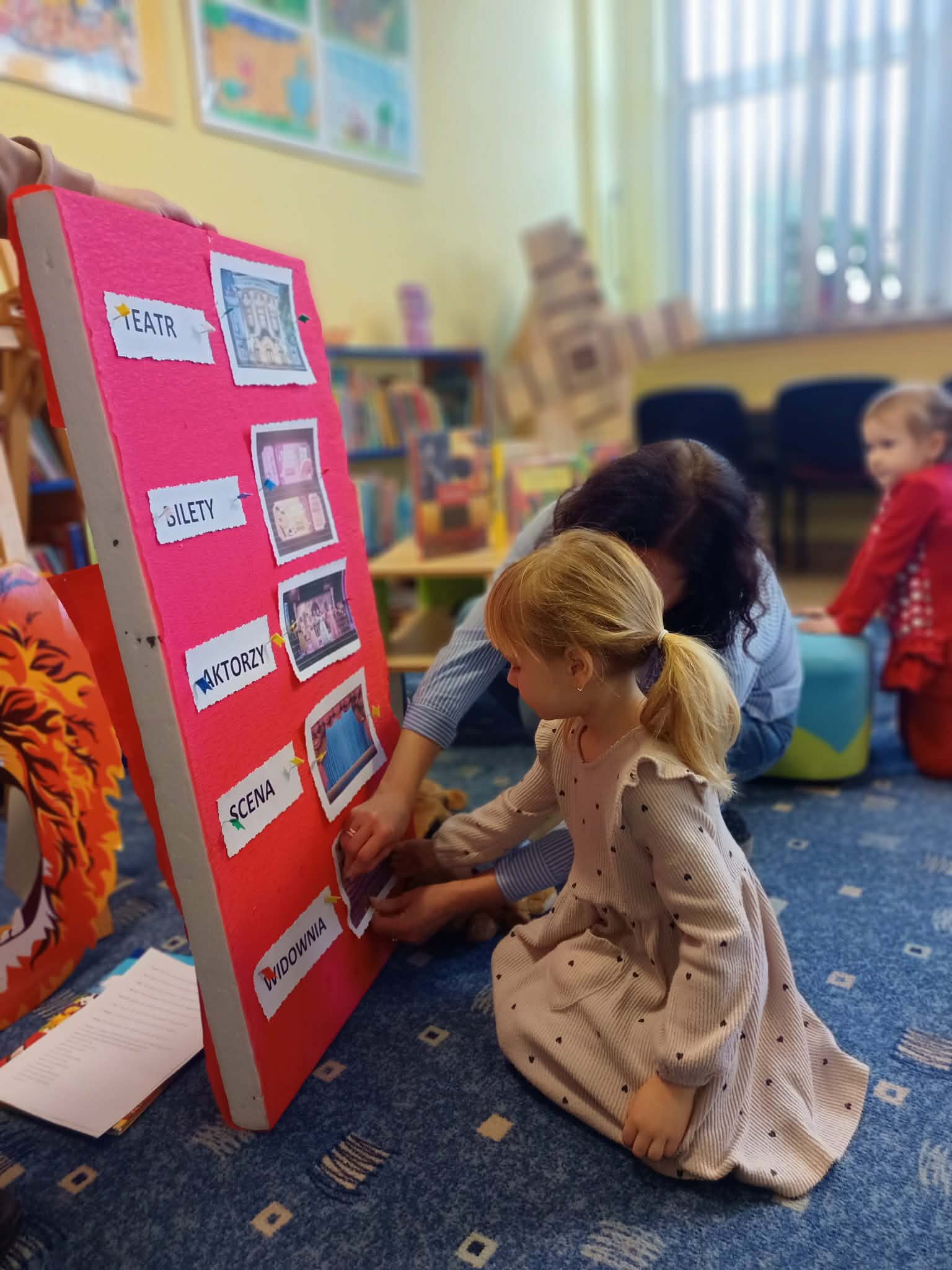 W ramach Tygodnia Kultury Języka w grupie przedszkolnej ,,Fiołki” z PS 35 zostały przeprowadzone zajęcia tematyczne, związane z filmem i teatrem. Inspiracją do rozmowy o sztuce filmowej była postać wybitnego polskiego reżysera Andrzeja Wajdy. Celem zajęć było rozwijanie zainteresowania kulturą języka, wzbogacanie słownictwa dzieci oraz pobudzanie ich wyobraźni poprzez zabawy teatralne i filmowe. Na początku zajęć dzieci wysłuchały przygód Kici Koci w teatrze, dowiedziały się kim jest reżyser i na czym polega jego praca. W prosty i dostosowany do wieku sposób przedstawiono postać Andrzeja Wajdy jako twórcy filmów i spektakli teatralnych. Dzieci rozmawiały o swoich doświadczeniach związanych z kinem i teatrem oraz wspólnie wyjaśniały znaczenie takich słów jak: aktor, scena, widownia, kamera, reżyser. Następnie sala została zamieniona w małe kino. Ręcznie wykonane domowe kino 3D dostarczyło dużo wrażeń i emocji.