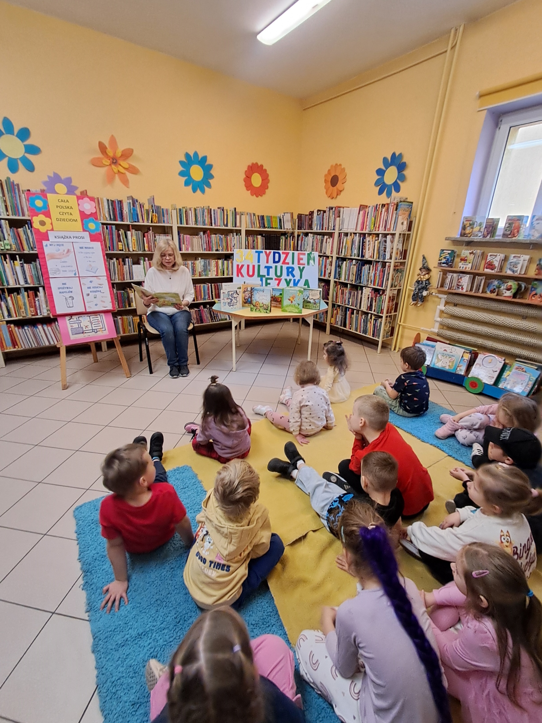 Grupa przedszkolaków z Sunny Kids przybyła do Filii nr 13, aby poczuć wiosenną atmosferę. Dzieci wysłuchały książki „Muminek i wiosenna niespodzianka” T. Jansson oraz opowiadania „W marcu jak w garncu’’ M. Strzałkowskiej. Na zakończenie spotkania „Liski’’ i ‘’Wiewiórki’’ z zainteresowaniem obejrzały kolorowe książki dla najmłodszych i zapoznały się z nowymi wyprawkami.