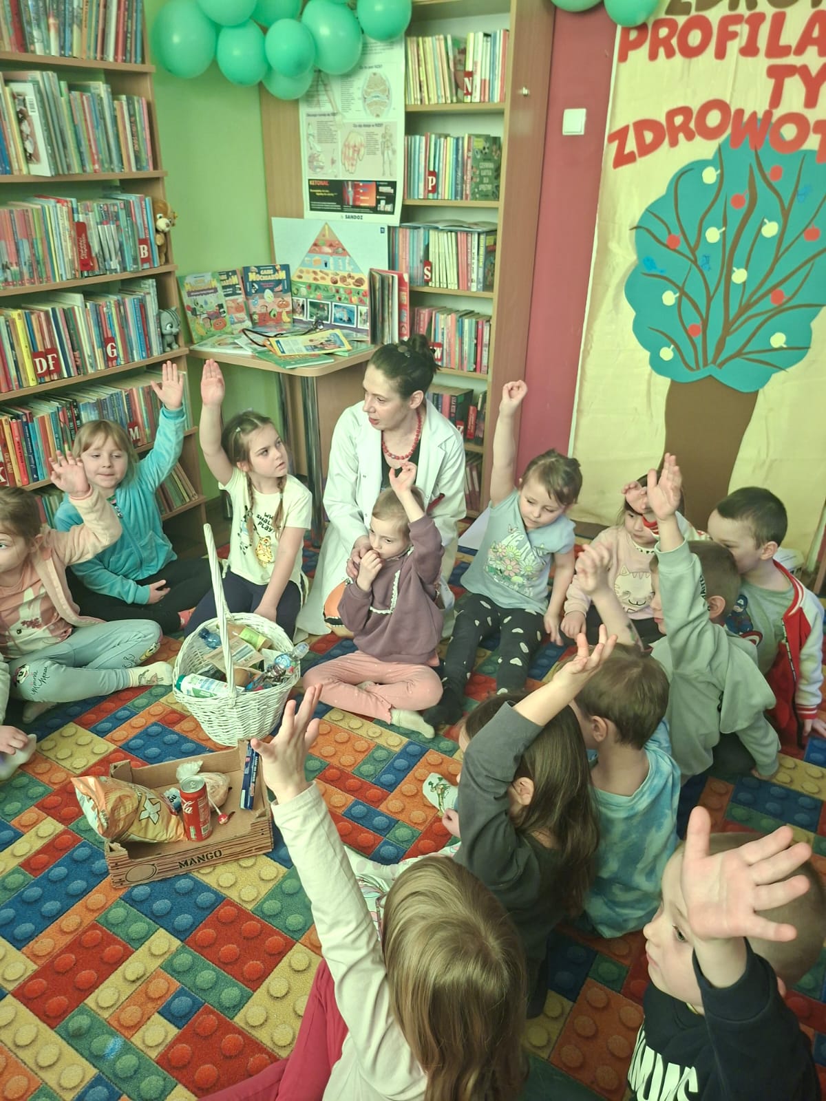 Z okazji XXXIV Tygodnia Kultury Języka Filia nr 12 MBP im. J. Pilcha w Kielcach zaprosiła 5-latki z gr. III z PS nr 4 w Kielcach. Tematem spotkania, które odbyło się 11 marca 2026 r., była profilaktyka zdrowotna. Zajęcia okazały się świetną okazją do wprowadzenia i utrwalania od najmłodszych lat zdrowych nawyków i zasad higieny. W profilaktyce zdrowotnej informacja to ważne narzędzie pozwalające zrozumieć stan zdrowia, identyfikować czynniki ryzyka i motywować do zmian stylu życia na prozdrowotne. Dlatego istotne jest wspieranie wszelkimi możliwymi metodami działań promujących zdrowie dzieci, by zwiększyć ich szanse na dobre i długie życie.