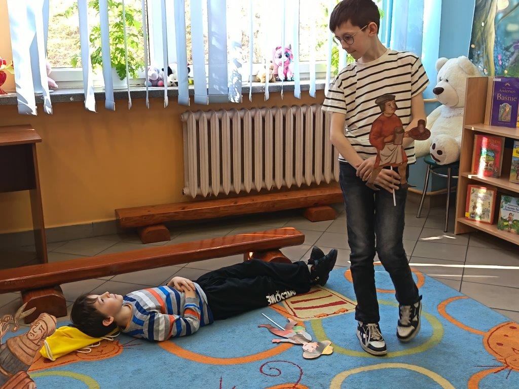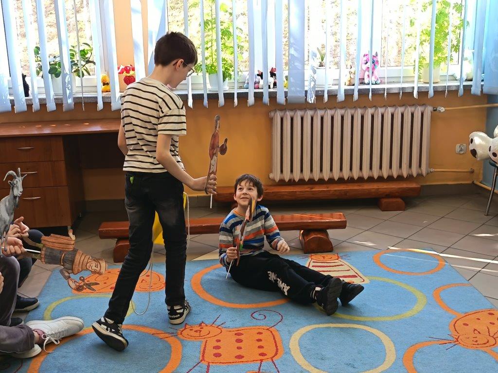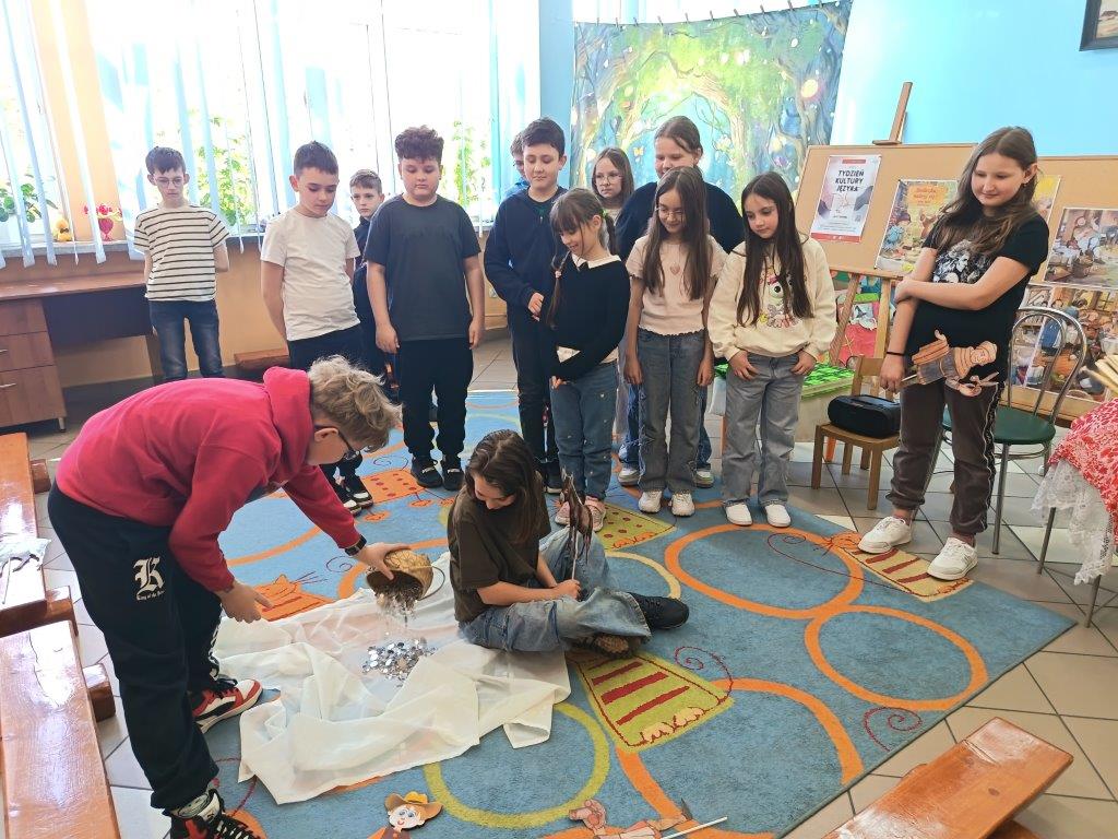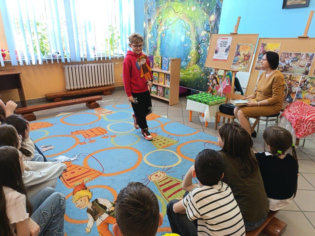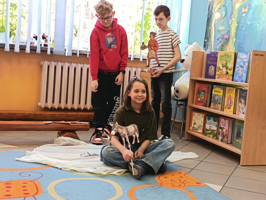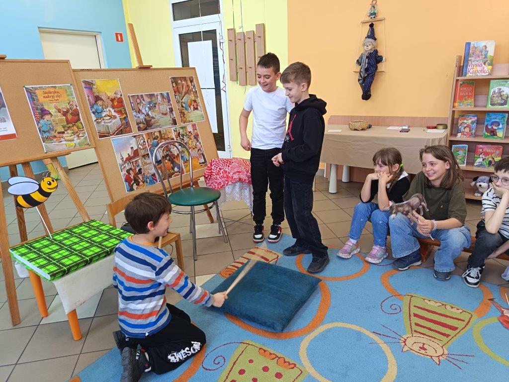 Czy stare baśnie przemawiają do współczesnych dzieci? Czy baśń "Stoliczku, nakryj się", napisana 200 lat temu przez braci Grimm. może dziś zainteresować 9-latków? 13 marca Filia 11 zaprosiła z okazji Tygodnia Kultury Języka klasę 3a ze SP 33, by pokazać uczniom, że choć stare baśnie przedstawiają nieznane nam realia, a język odbiega od tego, jakim porozumiewamy się obecnie, to jednak taki utwór może być nadal ciekawy, a nawet inspirujący. Namówiliśmy naszych gości do zabawy w teatr - dzieci wcieliły się w role krawca i jego synów, a także karczmarza, kozy, osła i pszczoły. Były też role drugoplanowe - wesoła kompania rzemieślników oraz krewni i znajomi krawca. Nasi aktorzy nie mieli wcześniej żadnych prób, więc na początku trochę nieśmiało wcielali się w poszczególne postacie, ale później przełamali tremę i z coraz większą odwagą oraz kreatywnością angażowali się w odgrywania swoich ról. W rezultacie wszyscy świetnie bawiliśmy się, a uczniowie wychodząc obiecali, że sięgną też po inne baśnie braci Grimm.