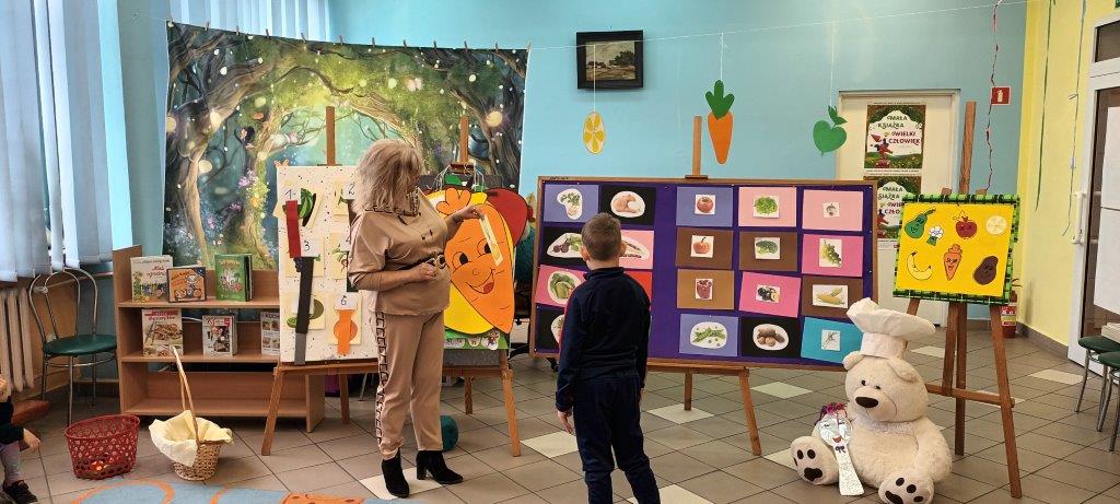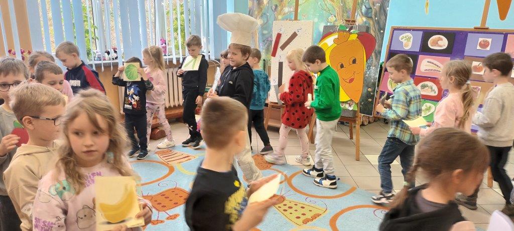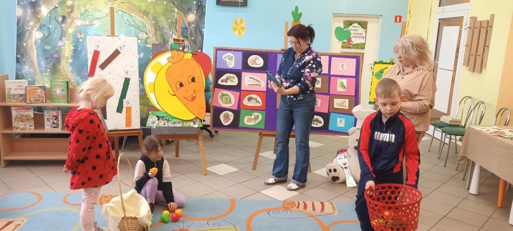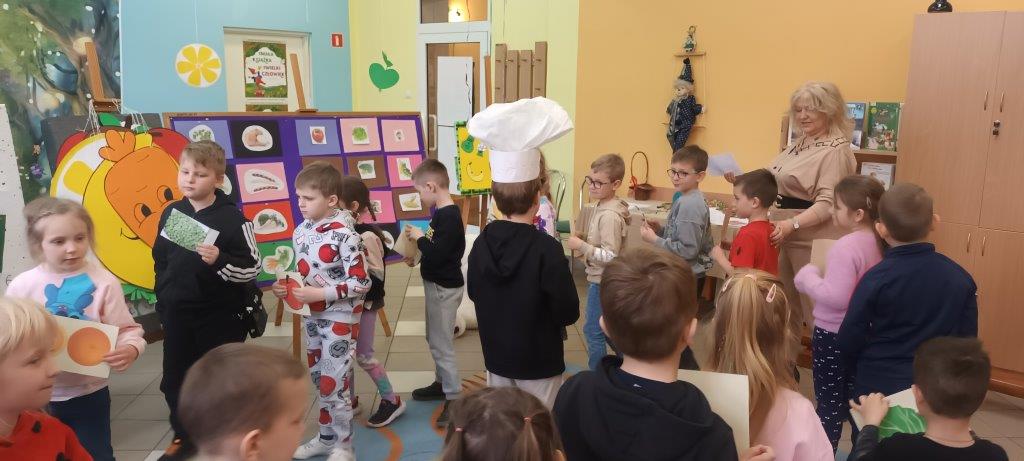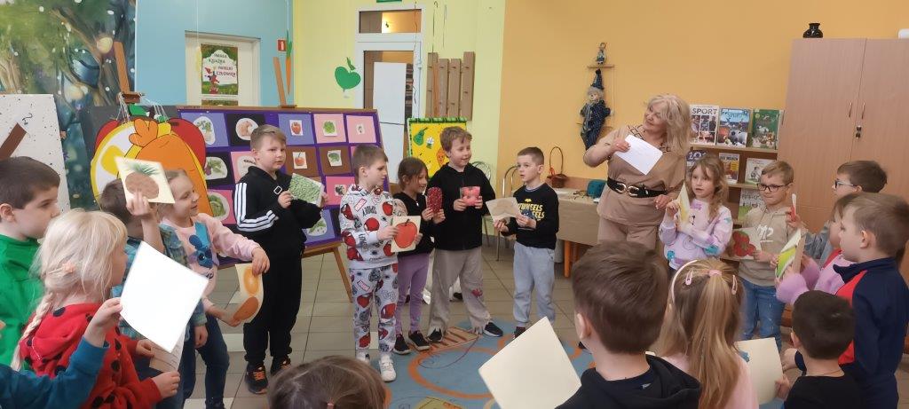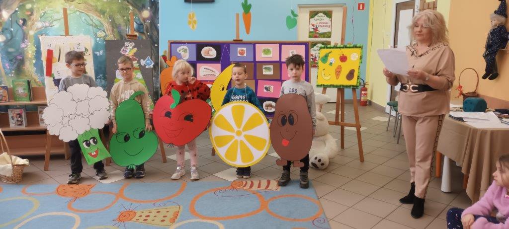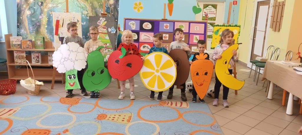 25 marca odwiedziły nas „Biedronki” z PS nr 42. Dzieci z przyjemnością wysłuchały opowiadania pt. „Jarzynowa rozmowa” z książki – „Bukiet marzeń” Anny Rolińskiej. Rozmawialiśmy na temat zdrowego odżywiania, witamin, zapoznaliśmy się z piramidą zdrowego żywienia i zasadami zdrowej diety. Następnie dzieci odgadywały zagadki i dumnie prezentowały swoje ulubione owoce i warzywa. Doszliśmy do wniosku, że gdy zadbamy o swoje ciało dziś, ono zadba o nas jutro.