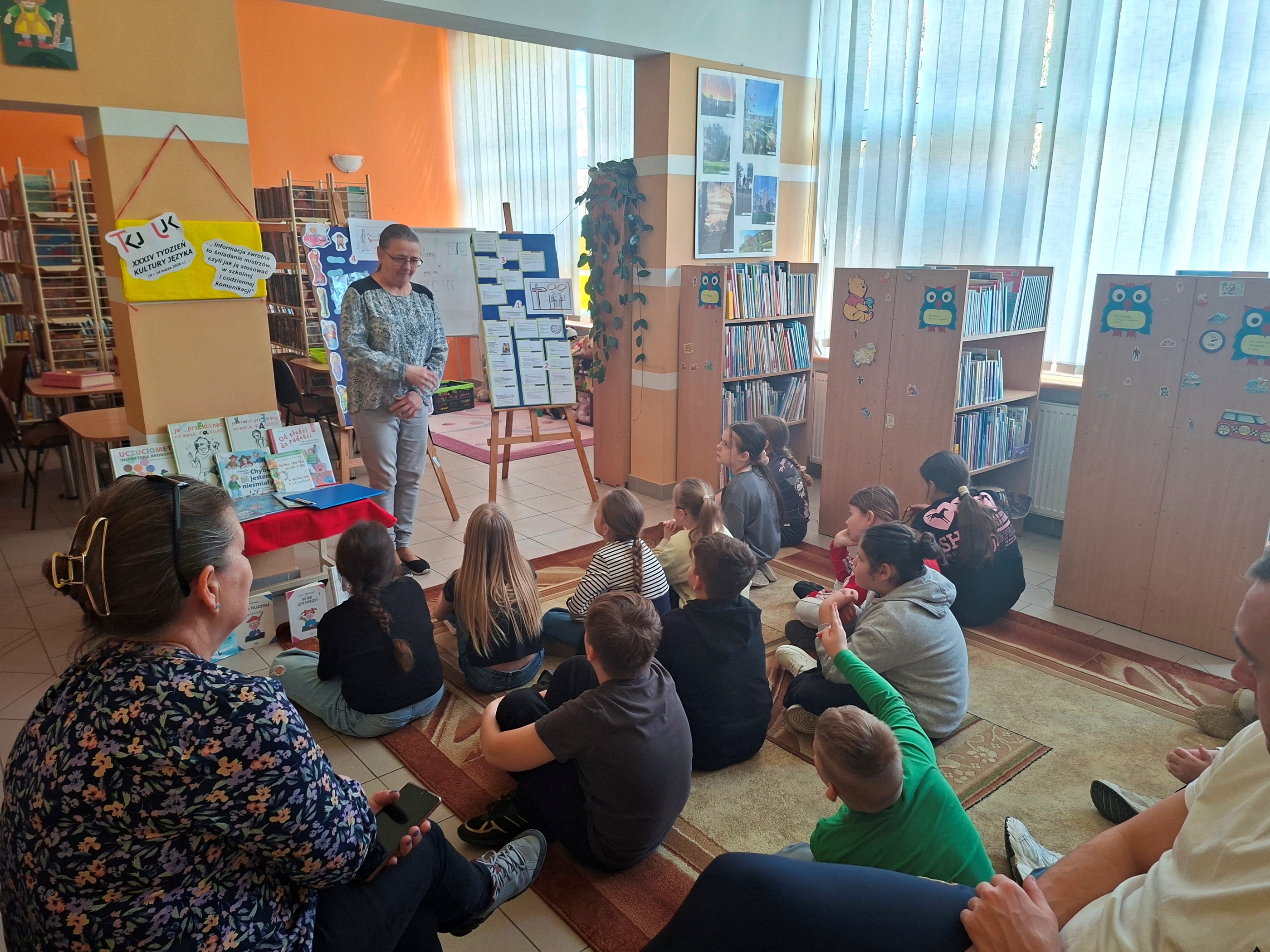 9 marca rozpoczął się XXXIV Tydzień Kultury Języka. W szranki z zawiłościami pięknej polszczyzny stanęli uczniowie klasy III”A” ze Szkoły Podstawowej nr 18 w Kielcach. Informacja zwrotna, będąca hasłem tegorocznej edycji, to pojęcie trudne, ale mili goście dzielnie stawili czoła nowemu terminowi. W trakcie spotkania zdefiniowali pojęcie komunikacji, jej uczestników - czyli nadawcę i odbiorcę. I tu zaczęła się prawdziwa zabawa z językiem. Dla tak młodych ludzi komunikacja to po prostu rozmowa – wymiana zdań, myśli. Dzieci doskonale wiedziały iż wypowiedzi zawsze towarzyszy odpowiedź – owa tajemnicza informacja zwrotna. Bez problemu określili jej formę: słowną, pisemną i niewerbalną. Ta ostatnia towarzyszyła nam do ostatnich chwil spotkania (te minki, grymasy i wymowne gesty były doskonałym uzupełnieniem dzisiejszej potyczki).