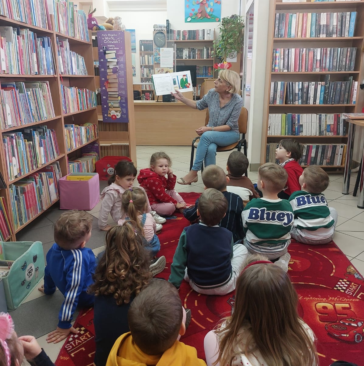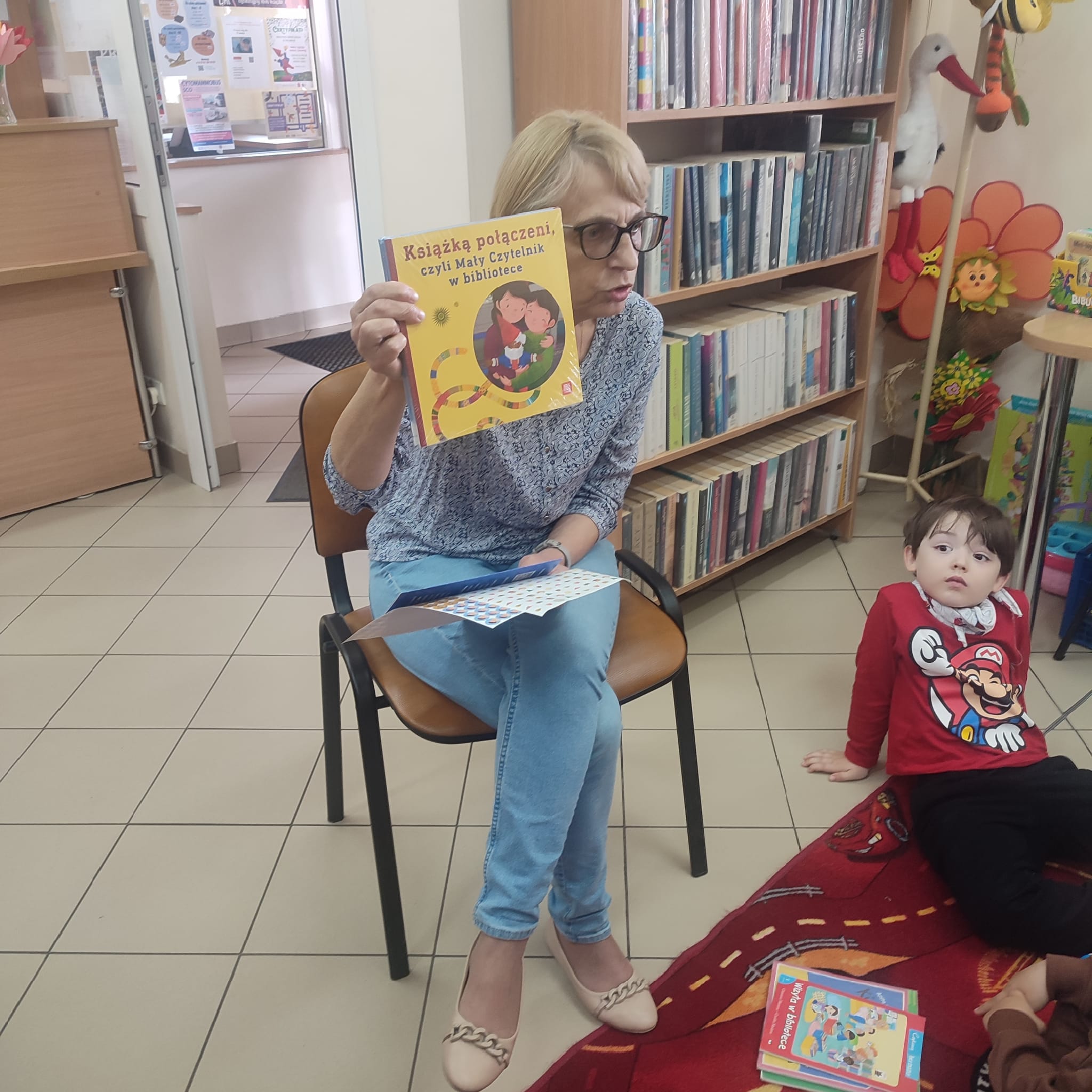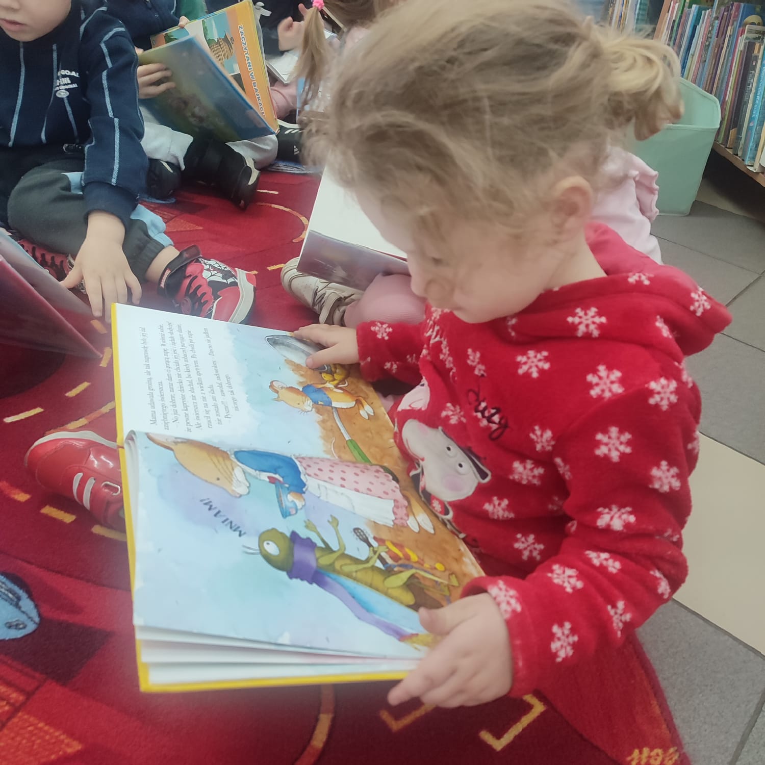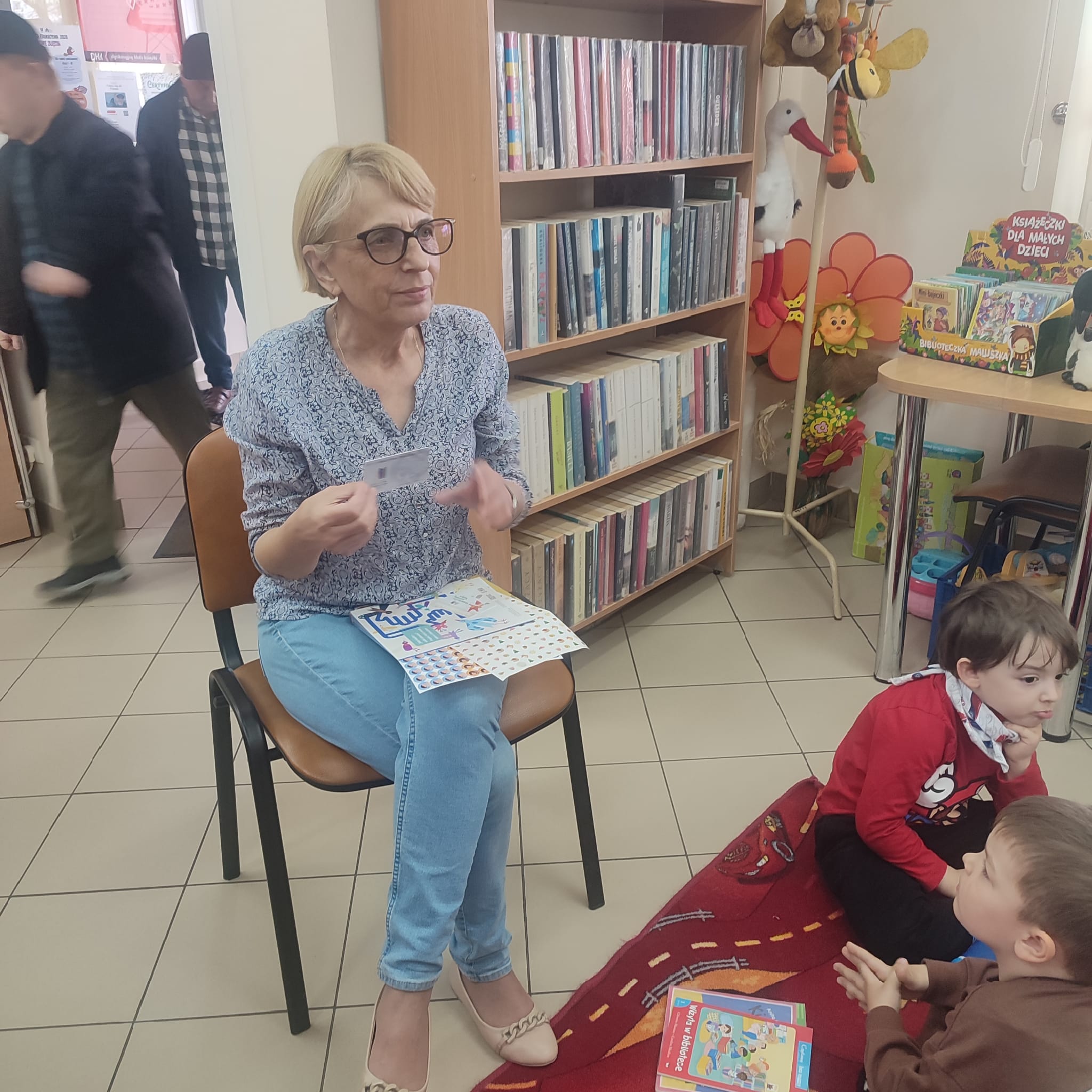 Pierwsza wizyta przedszkolaków w bibliotece była wyjątkowa. W słoneczny, ciepły dzień dzieci przyszły spacerem, pełne ciekawości i energii. Promienie słońca wpadały przez duże okna, tworząc przytulną atmosferę zachęcającą do odkrywania książek. Na początku bibliotekarka opowiedziała dzieciom, jak należy zachowywać się w bibliotece i pokazała kolorowe półki pełne bajek. Przedszkolaki z zainteresowaniem oglądały książeczki, wybierały swoje ulubione i słuchały głośnego czytania. „Kamyczek w bibliotece” wzbudził wśród nich ogromne zainteresowanie. To był dzień pełen radości, nowych doświadczeń i pierwszych kroków w świecie książek.