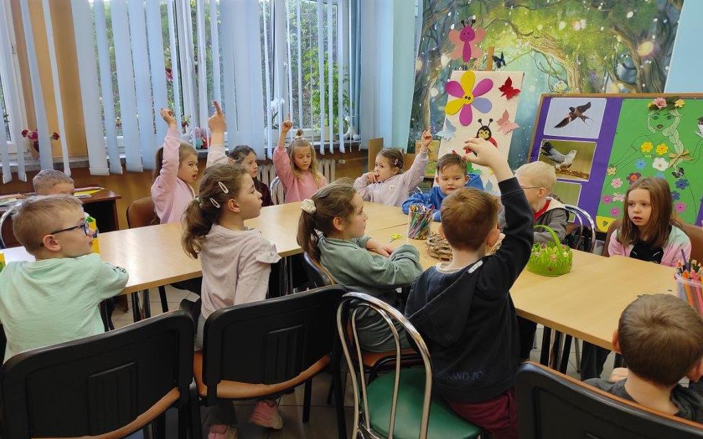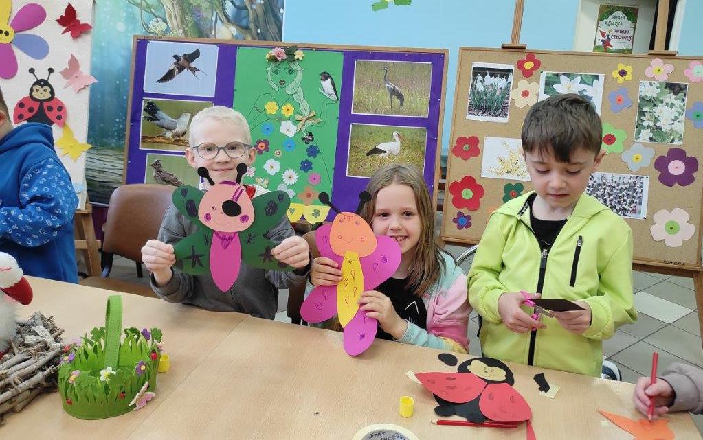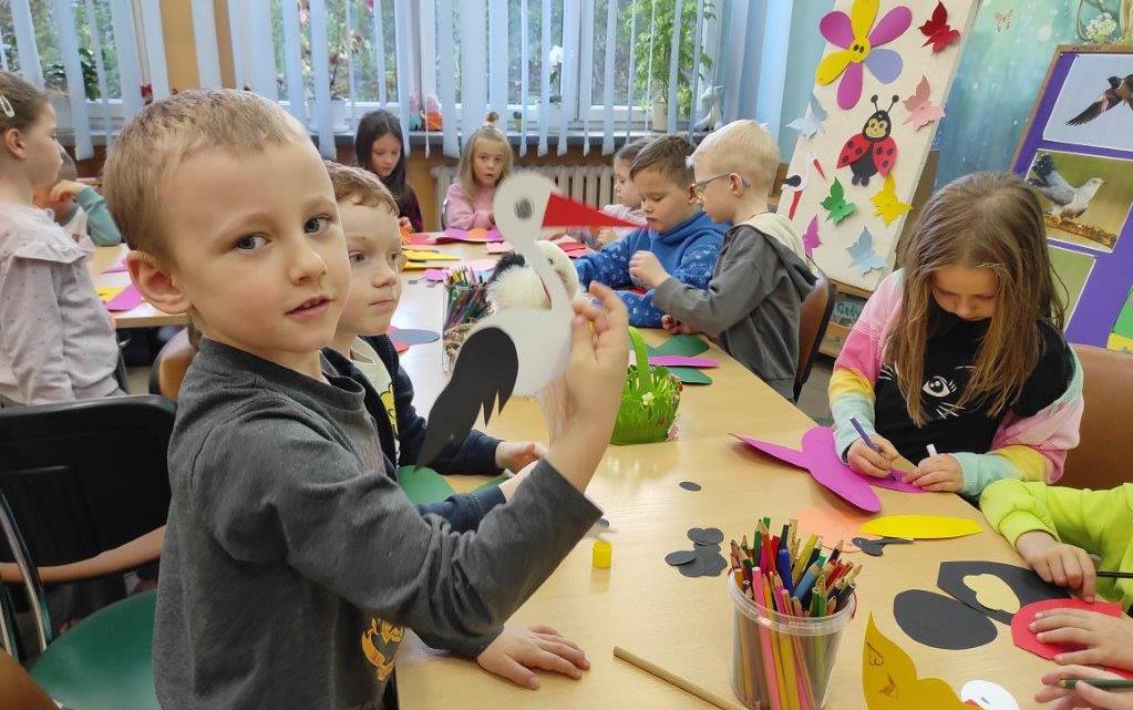 21 kwietnia w Filii nr 11 odbyły się kolejne warsztaty, tym razem o tematyce wiosennej. Grupa przedszkolaków z PS nr 40 z entuzjazmem wcieliła się w rolę małych artystów i w radosnym, wiosennym nastroju przystąpiła do działania. Wspólnie tworzyliśmy wiosenne arcydzieła – powstały kolorowe motylki, biedronki i bociany. Na zakończenie spotkania dzieci zapoznały się z akcją „Mała książka – wielki człowiek” oraz wysłuchały wiersza Katarzyny Szyngiery pt. „Dzieci wiosny”. Celem warsztatów było powitanie nowej pory roku poprzez aktywności rozwijające kreatywność i sprawność manualną. Dziękujemy za spotkanie i zapewniamy, że warsztaty w bibliotece staną się stałym elementem naszych twórczych działań!